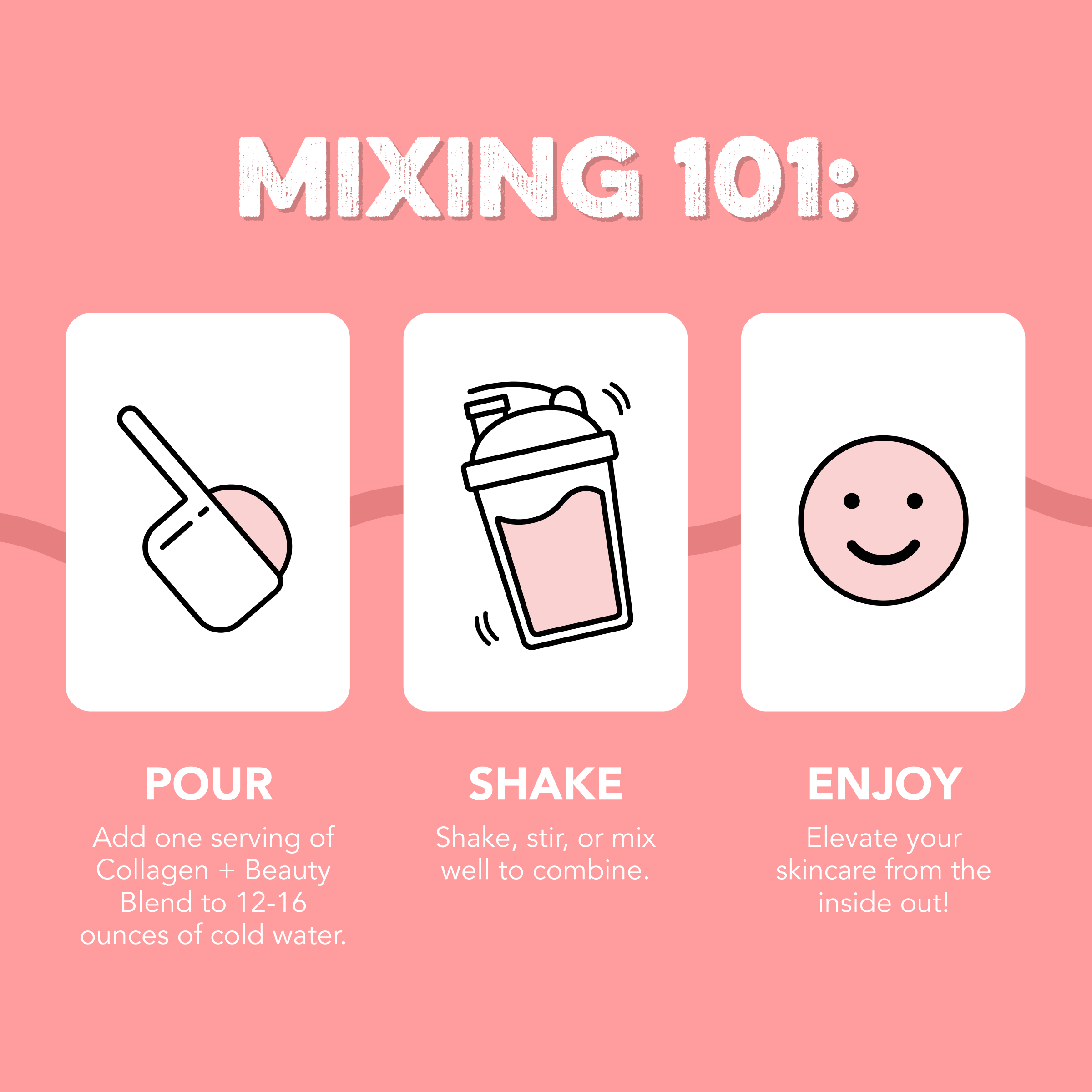 HOW TO USE: Add one serving of Collagen + Beauty Blend to 12-16 ounces of cold water. Mix well and enjoy!