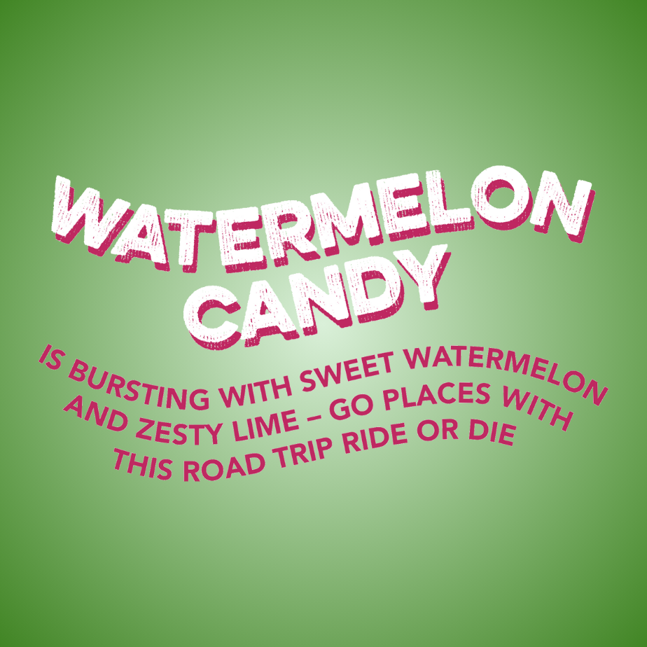 FLAVOR PROFILE: Watermelon Candy is bursting with sweet watermelon and zesty lime – go places with this road trip ride or die.